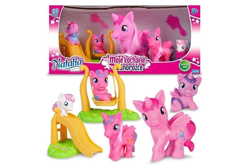 W zestawie: 5 koników, zjeżdżalnia, huśtawka, wózek, akcesoria. číst celé