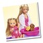 Steffi i Evi z 4 zwierzątkami,stołem, budą dla psa, klatką dla królika, placem zabaw i wieloma innymi akcesoriami, 35 elementów, 29cm Steffi, 12cm Evi.