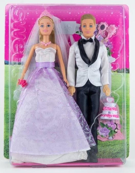 Moda para czyli lalka Anlily 30 cm w sukni ślubnej i mężczyzna Anlily w garniturze. Dodatkowe akcesoria: szczotka, lusterko, bukiet, tort, naszyjnik, kolczyki. Produkt nie potrzebuje baterii. Zabawka przeznaczona dla dzieci powyżej 3 roku życia.