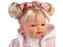 Mluvící panenka s měkkým látkovým tělem a s vlásky po celé hlavě. Po vytažení dudlíku z úst začne panenka říkat „mama“, „papa“ a vydávat reálný zvuk plačícího miminka. Panenku lze utišit dudlíkem. Velikost 33 cm. Součástí balení je 3 x knoflíková baterie LR44. číst celé