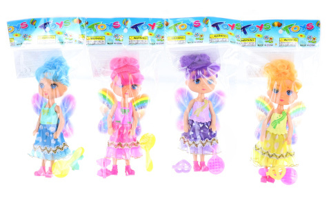 Plastová panenka víla s duhovými křdly spolu s hřebínkem a sponkou. Rozměr balení cca 22,5 x 10,5 x 4 cm. Věk 3+