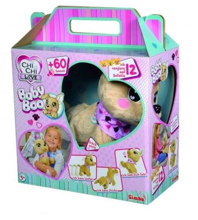 ChiChi Love Baby Boo reaguje na 12 różnych poleceń głosowych, potrafi chodzić, siadać, kłaść się, stać na przednich oraz tylnych łapach, wygrywa 60 dźwięków, w tym melodie.