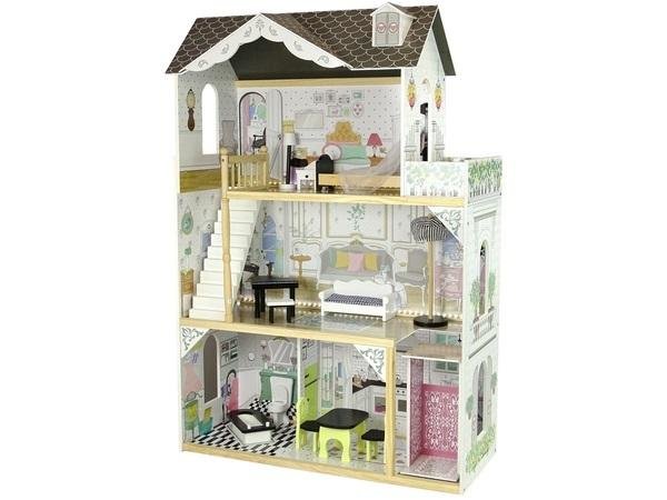 W pełni wyposażony drewniany domek dla lalki to propozycja, którą każda młoda dama musi mieć w swoim pokoju. Zabawa w rodzinę i zabawa lalkami jest jednym z ulubionych zajęć małych dziewczynek. Zabawka pozwala na stworzenie własnego, niepowtarzalnego domu, którym dziecko może urządzić wedle własnego gustu. Konstrukcja domku jest bardzo przemyślana i sprytna. Domek może stanowić piękną ozdobę pokoju małej księżniczki. Domek odznacza się nowoczesnym, stonowanym i rzeczywistym wyglądem, a także bogatym wyposażeniem.
