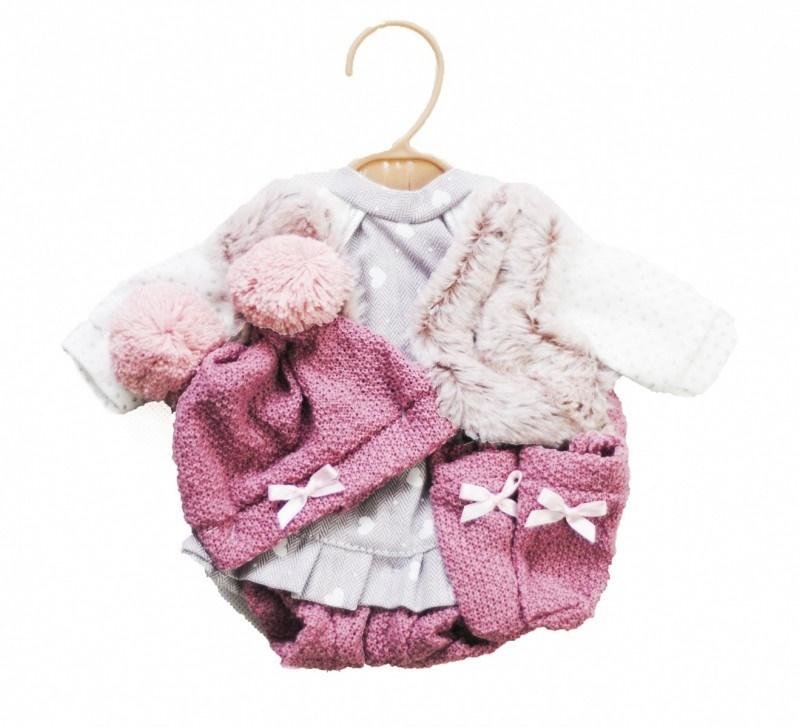 Ubranka pasują na lalki, które są wzrostu 35 cm. W komplecie znajdziemy: sukienke w serduszka, futrzaną kamizelkę, czapkę z dwoma pomponami i buty z kokardkami. Ubranka zapakowane są w folię z wieszaczkiem. Stosowane przez nas tkaniny pochodzą od renomowanych marek odzieży dziecięcej, najlepszej jakości materiałów. Wszystkie produkty Llorens są zgodne z europejskimi przepisami dotyczącymi bezpieczeństwa dzieci, co gwarantuje, że Twoje dzieci będą się bawić w możliwie najbezpieczniejszy sposób.