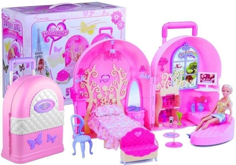 Domek w walizce jest zabawką, która spełni marzenie każdej fanki lalek. Domek jest rewelacyjnie wykonany, dzięki możliwości złożenia go w walizkę z regulowaną rączką można bawić się nim w dosłownie każdym miejscu. Zamyka i otwiera się za pomocą uroczego motylka. Ekskluzywny domek dostosowany jest do lalek o wysokości 29 cm, dzięki czemu będzie mogła się w nim bawić każda lalka z kolekcji dziewczynki.