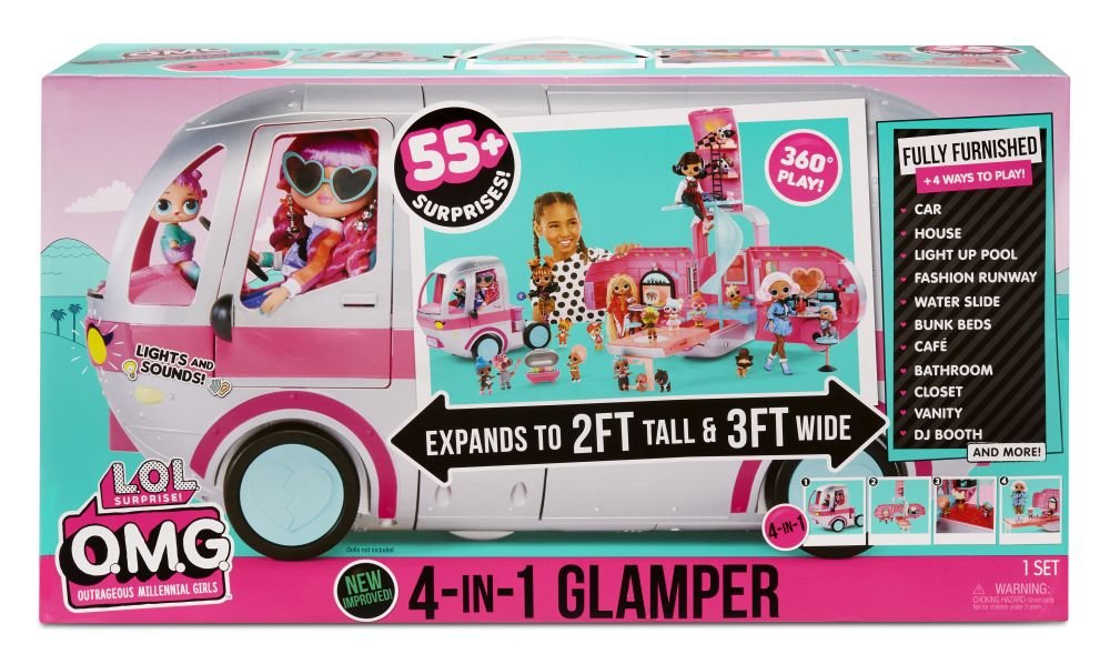 L.O.L. Surprise! nyní přichází v řadě již se třetím karavanem, tentokrát v krásné stříbrné barvě s růžovými detaily a funkčními světly. Karavan lze rozpojit, můžeš jej tedy rozložit na samostatné auto a dům. Obsah balení: • 1 stříbrný L.O.L. OMG karavan • 55 překvapení • osvětlený bazén • tobogán • patrové postele, toaleta, sklopné sedačky • kavárna, koupelna, skříň, BBQ gril • nálepky, kosmetické doplňky • přehlídkové molo • DJ mixážní pult a spousta dalšího Karavan neobsahuje panenku. Můžeš si hrát ze všech 4 stran.