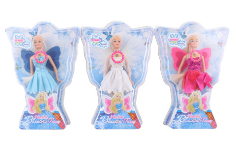 Plastová panenka víla na baterie o velikosti cca 29cm. Po stisknutí knoflíku se panence rozsvítí křídla. Baterie 3x AG13 jsou součástí balení. Rozměr balení cca 32,5 x 24 x 6,5 cm. Věk 3+ číst celé