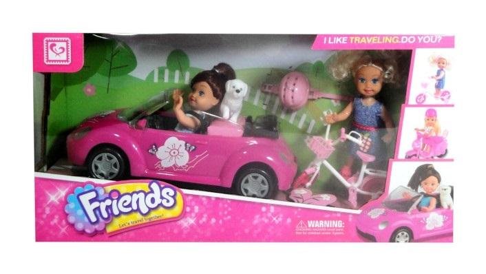 Zestaw 2 lalek z akcesoriami jakimi są: samochód, rower, kask, piesek. Te lalki lubią podróżować... Zabierz je zatem w niezapomnianą podróż. Produkt zapakowany w kartonowe opakowanie z przezroczystym okienkiem. Podane wymiary są wymiarami opakowania.