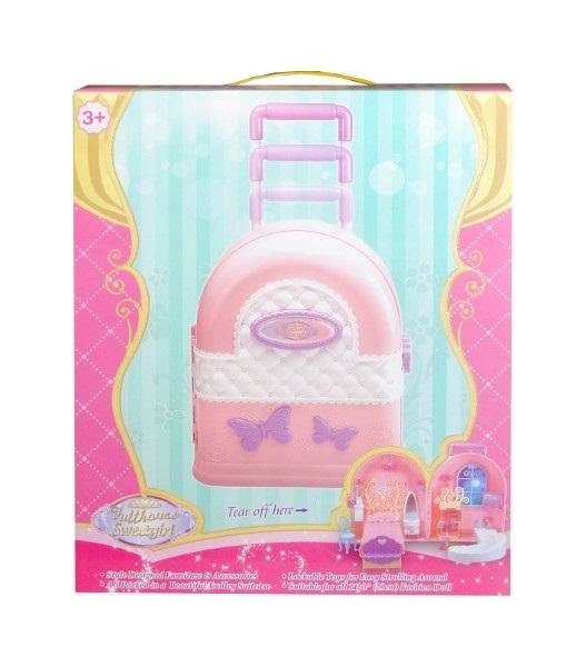 Baw się lalkami gdzie tylko chcesz... Z tą walizką będzie to możliwe! Mebelki dla lalek umieszczone w wygodnej walizce pozwolą dziewczynkom zabrać zabawkę wszędzie, gdzie tylko zechcą. Produkt zapakowany w kartonowe opakowanie. Zabawka dla dzieci od 3 lat.