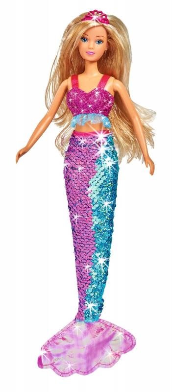 Panenka Steffi jako mořská panna se dvěma připínacími vlasovými prameny a ploutví z barevných flitrů se swap efektem. Velikost 29 cm. číst celé