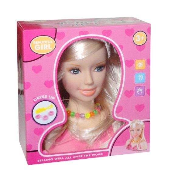 Zabawka głowa do czesania. Pozwala wyćwiczyć zmysł zręcznościowy, a także odkryć talent fryzjerski u małych dziewczynek. W zestawie znajdują się m.in. 3 gumki, grzebień, które pozwolą dziewczynkom na różne stylizacje. Produkt zapakowany w kartonowe opakowanie z przezroczystym okienkiem. Produkt dla dzieci od 3 lat. Podane wymiary są wymiarami opakowania