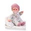 Urocza dziewczynka o imieniu Kika 11115 to kolejna hiszpańska lalka spośród modeli proponowanych przez markę Antonio Juan. Kika to jedna z niewielkich laleczek, gdyż ma 27 cm wysokości. Niebieskie oczy dziewczynki malowane ręcznie i wyglądają jak prawdziwe, a ich oprawę stanowią długie rzęsy oraz delikatne marszczenia znajdujące się na łuku brwiowym. Oczęta Kiki są stale otwarte. Na jej główce można zauważyć wyrzeźbione krótkie włoski przypominające jak u noworodka. Bobas nie posiada zaznaczonej płci, dlatego równie dobrze sprawdzi się do odgrywania roli chłopca czy dziewczynki, a odpowiednio dopasowana stylizacja zasugeruje płeć.