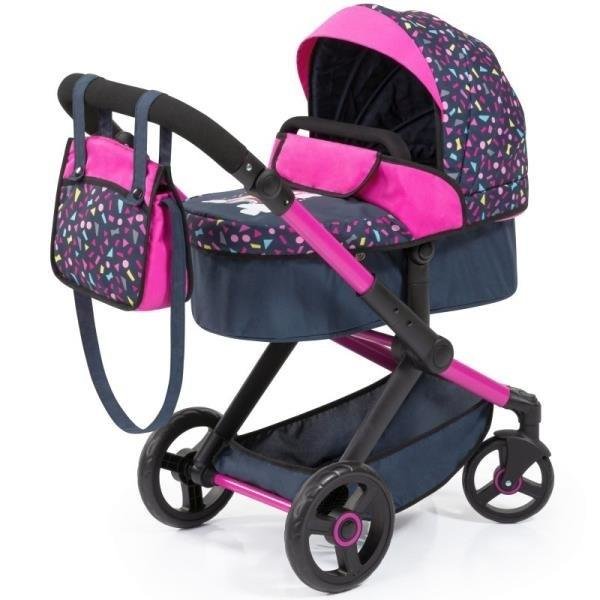 Nowoczesny wózek dla lalek kombi XEO ma elegancki wygląd i wiele różnych funkcji, odpowiedni dla lalek o wielkości do 52 cm. Dzięki regulowanej rączce wózek ten można łatwo dostosować do wzrostu dziecka. Możliwe jest również umieszczenie walizki w obu kierunkach. Ponadto Neo Vario ma odwracalny uchwyt, dzięki czemu można go łatwo przesuwać w obie strony. Dzięki dołączonym zatrzaskom i możliwej zmianie kąta przenośnego łóżeczka, wózek dla lalek można w kilka sekund zamienić na wózek spacerowy. Pokrowiec ma podwójne przeznaczenie - jeśli lalka siedzi lub leży w wózku, chroni ja zarówno przed słońcem, jak i wiatrem. Obracane przednie kola gwarantują stabilne pokonywanie zakrętów. Wymiary: 65 x 37 x 74 cm.