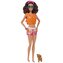 Vzhůru do surfování! S touto panenkou Barbie® si děti mohou zahrát na dokonalý den na pláži. Součástí balení je surfovací prkno, štěňátko a tematické doplňky. Surfovací prkno s groovy potiskem drží panenku na místě pomocí klipů na nohy a řemínku na kotník, zatímco ona se prohání na vlnách. Panenka Barbie® má na sobě sportovní plavecký obleček s čelenkou a je dodávána s hravým štěňátkem. Je pořádně natěšená na zábavu na slunci a má polohovatelné tělo, které umožňuje realistický pohyb! Mezi další doplňky patří záchranná vesta, ručník, stereo, frisbee, sluneční brýle, láhev s vodou, opalovací krém, banán a další. Panenka neumí samostatně stát. Barvy a vzhled výrobku se mohou lišit.