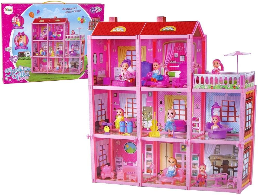 Domek Dla Lalek DIY Willa Lalka Wyposażenie Różowa W pełni wyposażony domek dla lalki to propozycja, którą każda młoda dama musi mieć w swoim pokoju. Zabawa w rodzinę i zabawa lalkami jest jednym z ulubionych zajęć małych dziewczynek. Zabawka pozwala na stworzenie własnego, niepowtarzalnego domu. Konstrukcja jest bardzo przemyślana i sprytna. Domek może stanowić piękną ozdobę pokoju małej księżniczki. Cała willa ma 3 niezależne poziomy, w których znajduje się łącznie 8 pomieszczeń. Na pierwszy piętrze znajdziemy taras, dwa pokoje dzienne. Kolejne piętra zajmuje łazienka i dwa pokoje. Na ostatnim piętrze możesz urządzić sypialnie i aby odetchnąć, wyjść na taras. Każde pomieszczenie możesz urządzić według własnego gustu, dopasować wystrój i meble. Wewnątrz znajduje się 156 sztuk, do złożenia willi oraz urządzenia jej wnętrza. Czas poćwiczyć zdolności manualne i rozpocząć zabawę. Elementy zestawu: - elementy do złożenia willi - mebelki: sofa, dwa fotele, szafka, lampa - mała lalka - wanna - meble ogrodowe: parasol, stolik, trzy krzesła - pokój: toaletka, szafa, łóżko, małe krzesełko, szafka pod telewizor - instrumenty: skrzypce, mikrofon, bębenki, głośnik Wymiary domku: 63 cm x 17 cm x 65 cm Wymiary pudełka: 50 cm x 38 cm x 7 cm Domek przeznaczony jest dla dzieci, które ukończyły 3. rok życia. Prezentowany zestaw jest wykonany z najwyżej jakości tworzywa sztucznego.