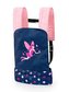 Te nowoczesne nosidełko jest idealne dla pluszowych zabawek lub lalek do 46 cm. Lalkę można nosić zarówno z przodu, jak i z tylu. Dzięki miękkim, szerokim pasom naramiennym oraz szerokiemu pasowi biodrowemu, który można indywidualnie regulować, ukochanego maluszka można nosić długo i wygodnie. Zintegrowane siedzisko po wewnętrznej stronie nosidełka zapewnia dodatkowe podparcie dla lalki.