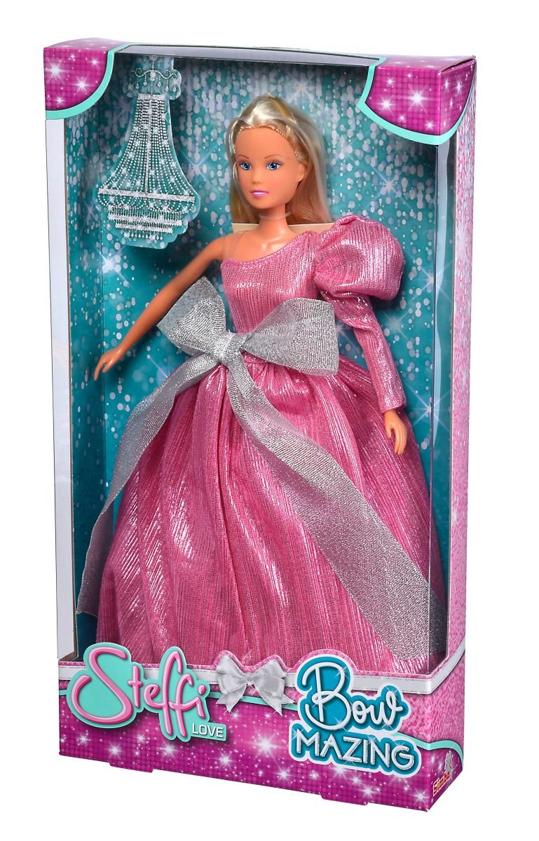 Panenka Steffi v nádherných večerních šatech s velkou mašlí. Výška panenky 29 cm. číst celé