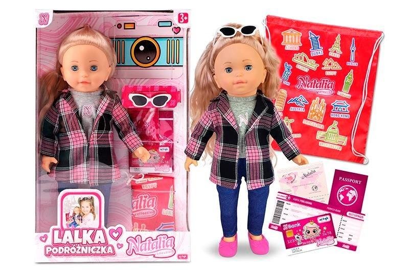 Naciśnij lalkę na brzuszek i posłuchaj jak wiele wie o podróżowaniu twoja nowa przyjaciółka! W zestawie: lalka miękka 41 cm., Plecak, okulary, aparat fotograficzny, paszport, karta kredytowa, karta pokładowa, funkcje: mówi 25 rymowanek na temat państw i ich stolic, mówi 14 fraz, śpiewa 3 piosenki o podróżowaniu, 12 motywów muzycznych, wym. Opk: 20 x 45 x 13 cm., Baterie: 3 x ag13 zał. Demonstracyjne, 3+