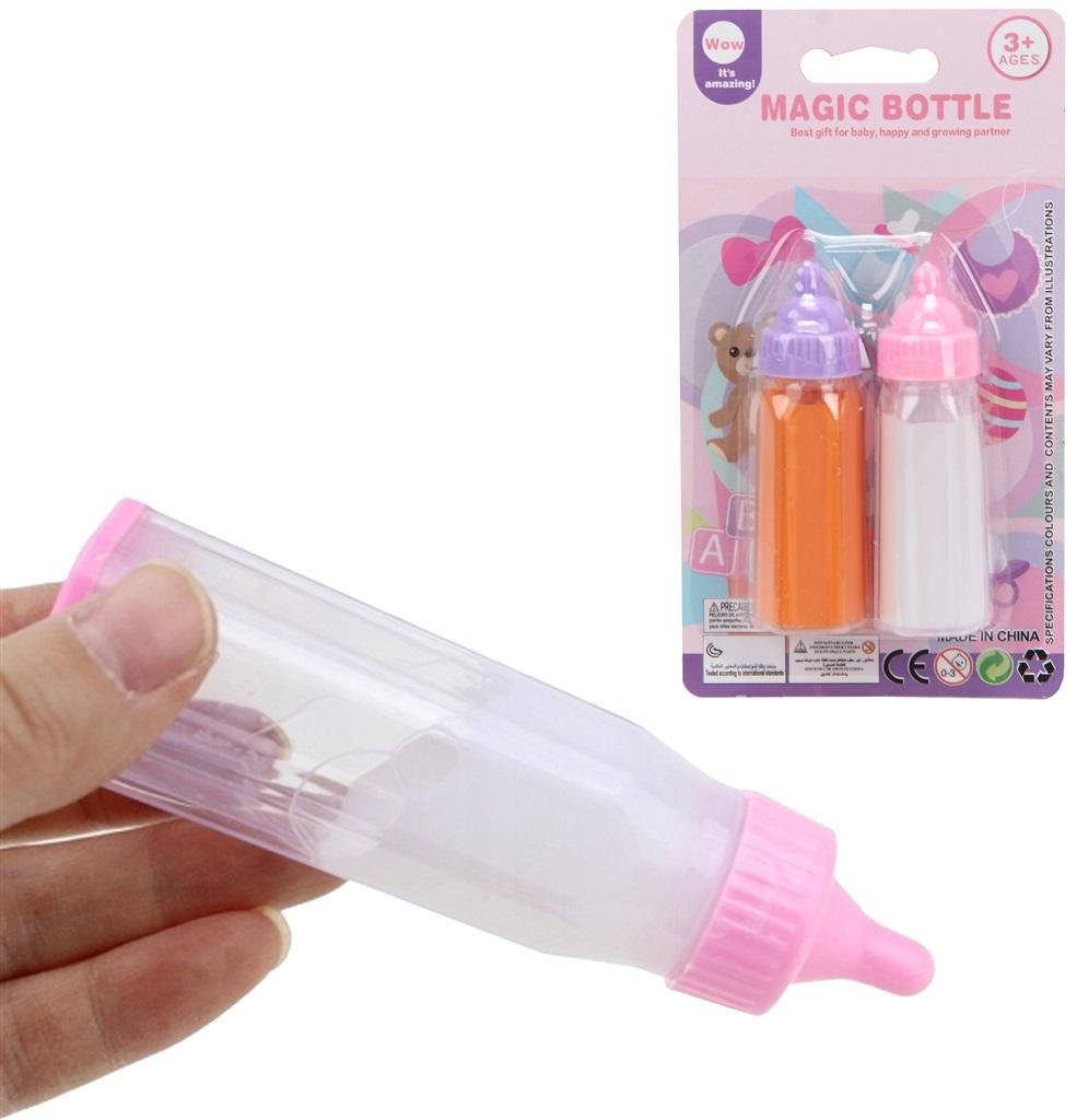 Magiczne butelki imitujące mleko i sok marchwiowy do karmienia lalek. číst celé