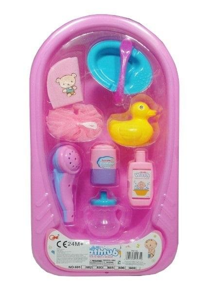 Wanna do pielęgnacji niemowlaka z dołączonymi akcesoriami m.in.: szampon, puder, gąbka, kaczuszka. Zabawka rozwija u dziecka opiekuńczość, troskę o drugą osobę.#&Zabawka przykryta jest przezroczystym kloszem. #&Produkt dostępny dla dzieci od 24 miesiąca życia. . #&Produkt w kilku wersjach kolorystycznych, wybierany losowo. Cena dotyczy jednej sztuki.