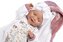 Lalki bobasy z najnowszej kolekcji hiszpańskiej manufaktury Llorens wyglądem przypominają prawdziwego niemowlaka i są idealną zabawką dla dzieci w różnym wieku. Producent zadbał o szczegóły naturalistycznego wyglądu takie jak płeć, fałdki czy mimika twarzy co sprawia, że lalki te wyglądają jak żywe, prawdziwe dziecko. Oczywiście zapewniono także wysokiej jakości, piękne ubranka i liczne dodatkowe akcesoria, tak aby zabawa tymi bobasami cieszyła nasze ukochane dzieci. Bobas Lala 74040 ma 42 cm i wykonana jest w całości z delikatnego, przyjemnego w dotyku winylu. Po naciśnięciu miękkiego brzuszka lala płacze i mówi "mama, papa". Rączki i nóżki są ruchome. Dołączony smoczek pełni funkcję dekoracji. Lala ma niebieskie oczy i ubrana jest w białe, krótkie śpioszki ozdobione różowymi i beżowymi postaciami i kropeczkami. Na główce ma uroczą czapeczkę pasującą do śpioszków. W komplecie znajduje się prześliczny, dwustronny, różowy becik. Z jednej strony częściowo wykończony mięciutkim misiem, z drugiej zaś jest w całości, w dzianinowe prążki z bocznymi skrzydełkami wiązanymi uroczymi sznureczkami. Lalka występuje także w wersji chłopca. Zapakowana jest w eleganckie pudełko, idealne na prezent. Manufaktura Llorens od lat dokłada wszelkich starań aby ich wyroby były doskonałe, autentyczne i piękne w każdym detalu. "Kochamy hiszpańskie lalki Llorens"