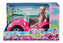 Steffi ubrana jest w modną, akwarelową sukienkę.Samochód plażowy ma obracające się koła, otwierany dach i siedzenia dla dwóch osób. Jest w kolorze różowym z turkusowymi elementami i białymi siedzeniami oraz srebrnymi kołami i ładnym, plażowym nadrukiem na masce i drzwiach, długość 29 cm.