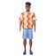 Ken z kolekce Fashionistas je oblečený v originálním tričku v bílo-oranžových pruzích, které perfektně ladí s jeho svěžím a mladistvým vzhledem. Je to postava, která inspiruje kreativitu a zábavu, ať už při hraní s dětmi nebo jako sběratelský kousek pro fanoušky Barbie. Vyroben s precizností a důrazem na detaily, tento Ken přináší autentičnost a styl do každé domácnosti.