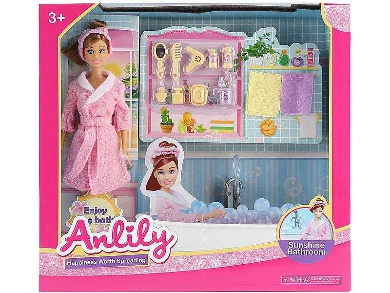 Zestaw lalka 29cm w łazience, wanna, akcesoria kąpielowe; 41x32x11cm, W/B číst celé