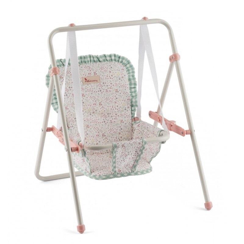 Urzekająca modnym designem i funkcjonalnością huśtawka cenionej hiszpańskiej marki ASI została zaprojektowana dla lalek o wysokości od 36 do 46cm. Uzupełnia popularną kolekcję akcesoriów Cloe. Zachwyca uroczy wzór kwiatuszkowej łąki w delikatnej miętowej kolorystyce. Huśtawka ta jest idealnym dodatkiem uzupełniającym pomysłową zabawę najmłodszych. Pozwala im tworzyć niezapomniane historie i spędzać wyjątkowe i niezapomniane chwile z ulubionymi towarzyszami zabaw: bobasami, lalkami klasycznymi lub maskotkami.?