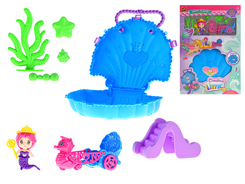 Mořská víla s doplňky a kufříkem mušle 10ks v krabičce