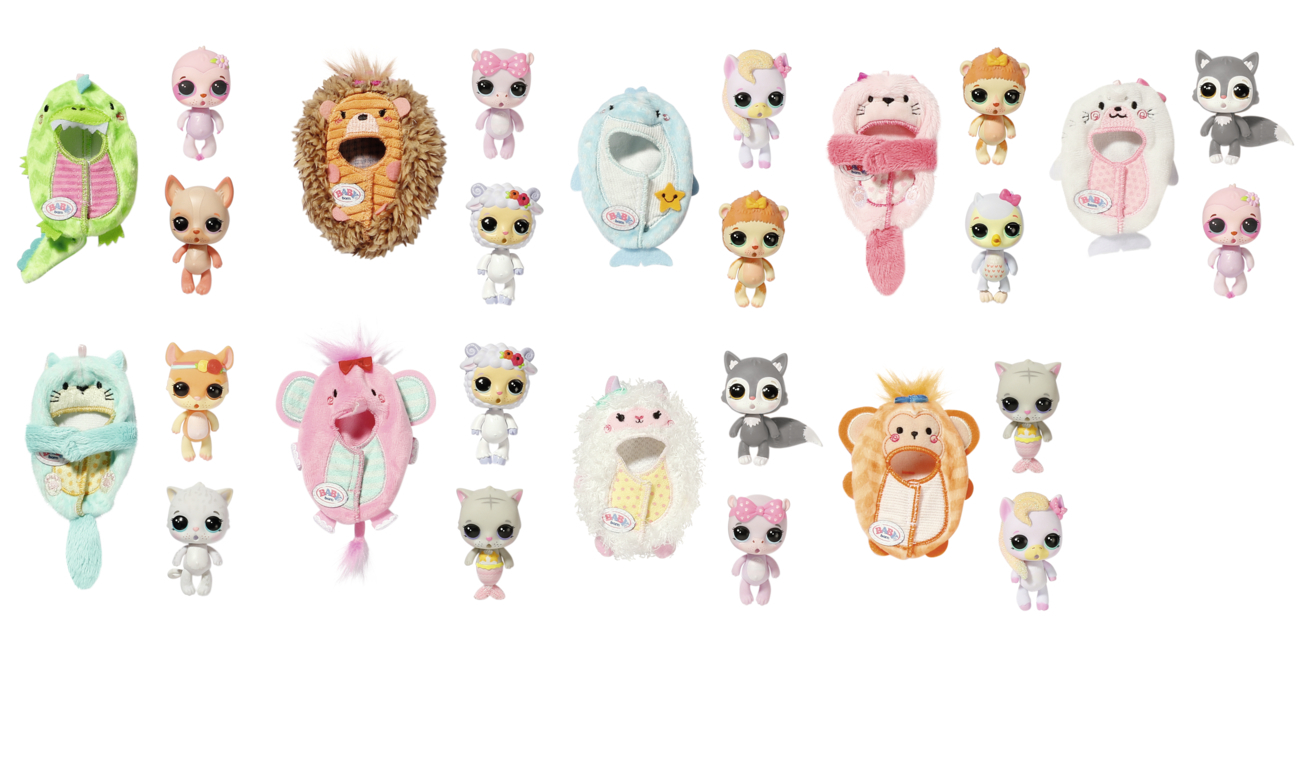 Do BABY born Surprise ZOO dorazila nová zvířecí miminka, která můžeš jedno po druhém objevovat. Nejprve rozbal ručník a pokochej se, jaký má zvířátko fusáček. Ale pozor, nic není tak, jak by se na první pohled mohlo zdát. Uvnitř fusáčku je totiž často ukryto úplně jiné zvířátko. Pod ježčími bodlinami možná spinká ovečka, pejsek může být převlečen za draka nebo se sova schovává v kostýmu bobra. Když se zvířecí miminka vyklubou z uzlíčku, mají zavřená očička. Aby se zjistilo, jakou mají barvu, opatrně víčka otři vlhkým hadříkem. Je to holčička nebo chlapeček? Jakou barvu má dudlík? Další zábava na tebe čeká, když zvířátko položíš do vaničky a vykoupeš v ledové vodě. Potom změní barvu nebo celý charakter, takže třeba kočička se promění v tygra a bílý poník je najednou růžový. Jakmile objevíš všechna tajemství zvířecího miminka, můžeš vyplnit jeho rodný list. Součástí je i plakátek s přehledem všech BABY born Surprise Zvířátek 3 a se zábavnými hrami. • BABY born Surprise. • Pro hraní i sbírání. • Se sponou na zavěšení/přenášení. • V ledové vodě mění barvu nebo charakter. • Různorodé hry s panenkami BABY born Surprise zvyšují dětskou představivost a bylo prokázáno, že podporují rozvoj sociálních dovedností a hodnot jako je zodpovědnost, komunikace a empatie. BABY born Surprise Zvířátka (3. série) ve fusáčku se sponou na zavěšení, dudlíkem, rodným listem a přehledem všech zvířátek. 18 různých kombinací. Sběratelský plakátek s rodným listem v češtině ke stažení na www.baby-born.cz.