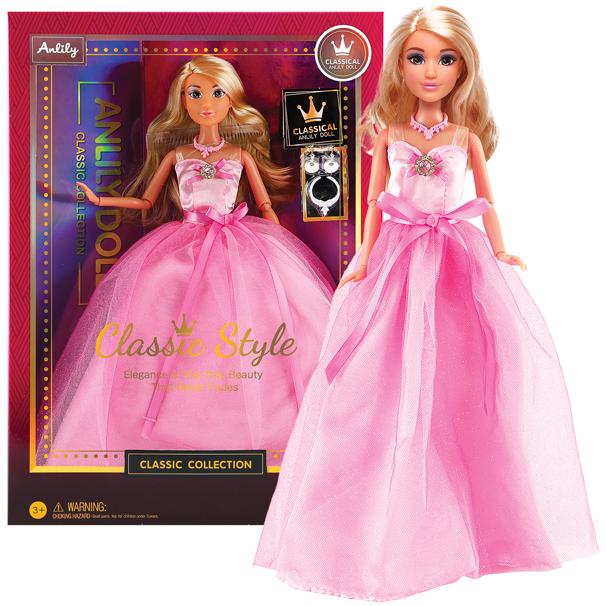 Módní panenka ve společenských šatech - dlouhé růžové
