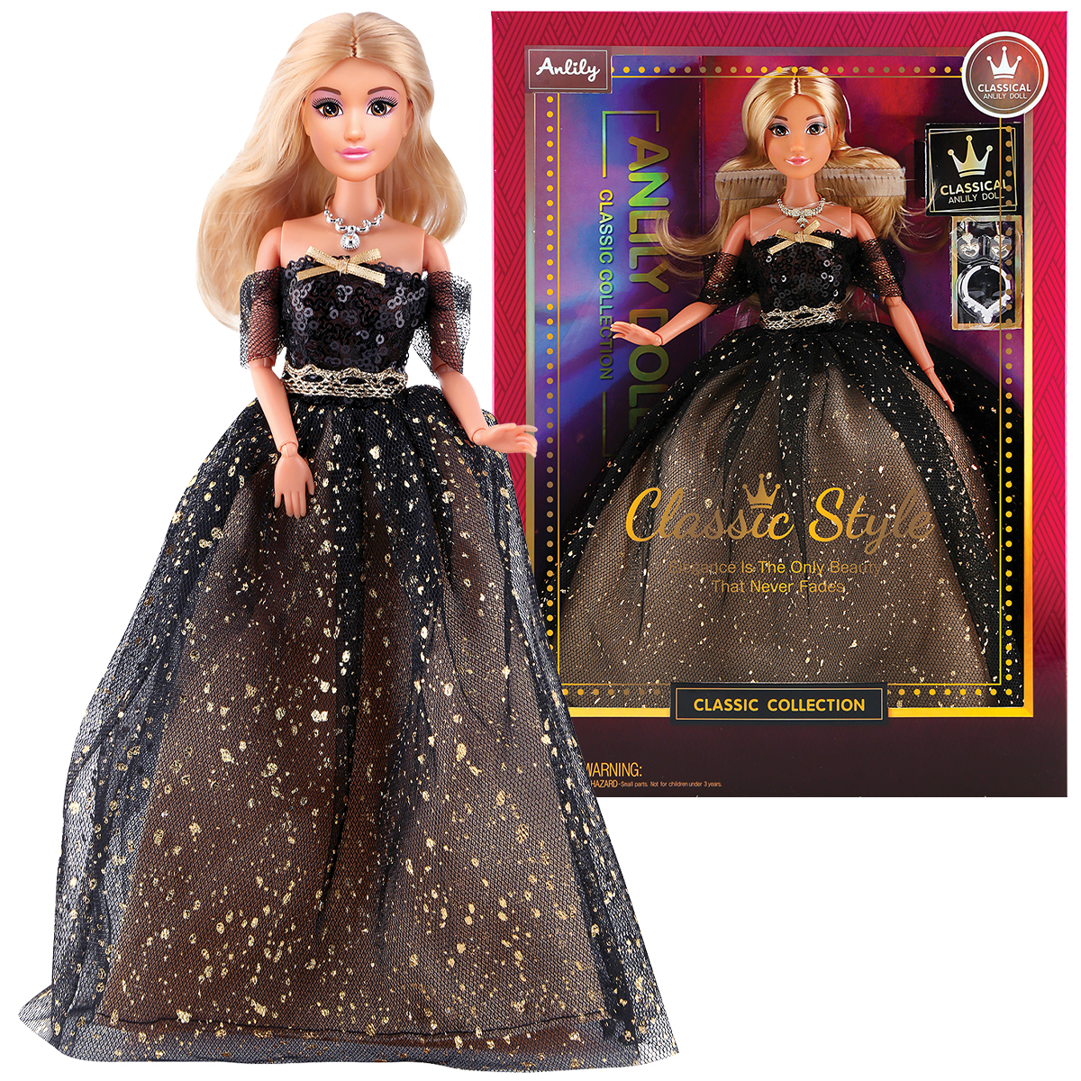 Tato panenka je oblečena do dlouhých černých společenských šatů, které z ní dělají hvězdu každé společenské události. Její design vyzdvihuje klasickou eleganci a vytváří dojem noblesy a vkusu. Skvěle se hodí nejen jako hračka, ale i jako dekorace do pokojíčku, nebo jako součást sbírky módních panenek.