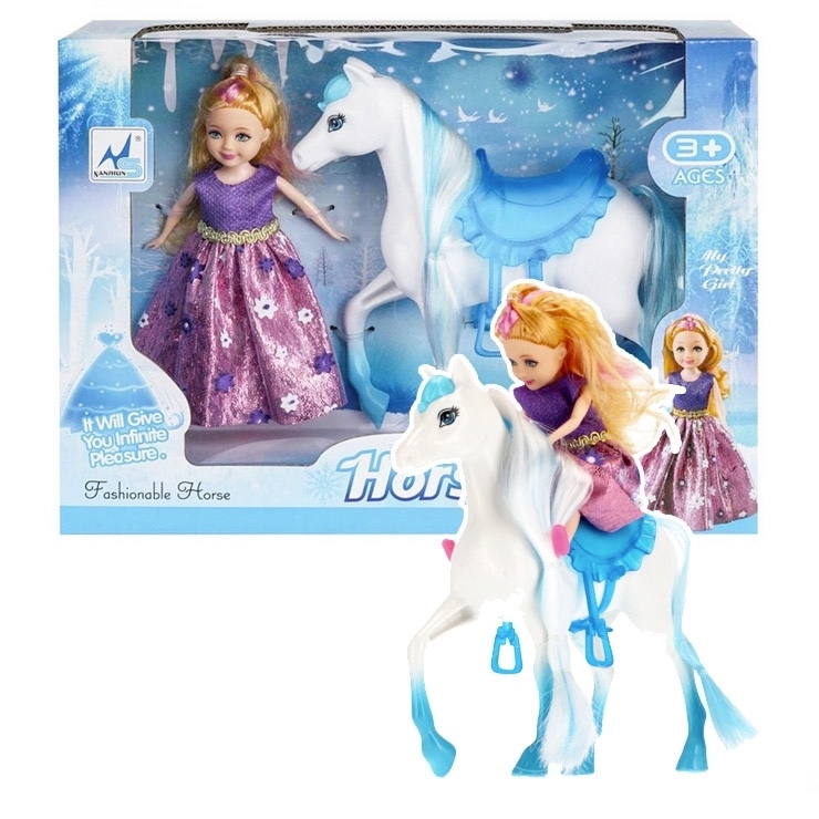 Ledová Princezna s koněm, osedlej tohoto krásného bílého koníka. Princezna se může jít ihned přehánět po ledovém království.