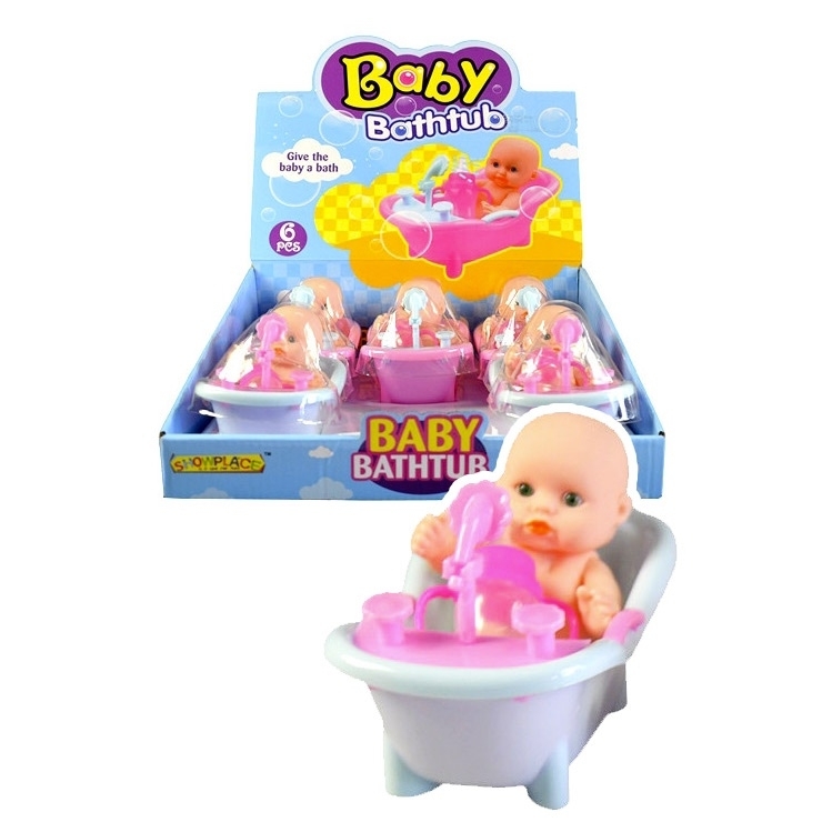 Panenka 10 cm ve vaničce 14 cm s lahví na mléko 6 cm, v nabídce s růžovou nebo bledě modrou vaničkou. Cena je za kus. číst celé