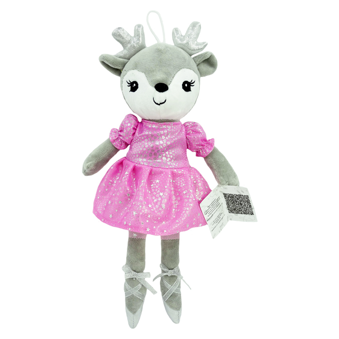 Roztomilá hadrová panenka v podobě jelení baletky se stane oblíbenou hračkou každé malé princezny. Panenka má jemné šedé tělíčko, krásné třpytivé růžové šatičky s hvězdičkami a na nožkách baletní špičky se stužkami. Díky měkkému provedení je ideální na mazlení, hraní, usínání i cestování.