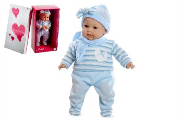 Miminko značky Arias po vyndání dudlíku pláče a říká "mama, papa" 3x po sobě. Miminko příjemně voní a má měkké tělo, 45 cm, na baterie. číst celé