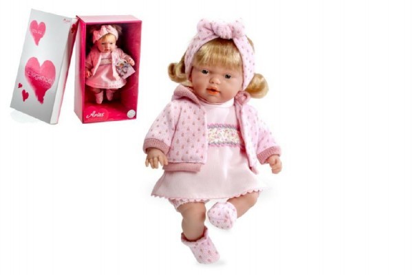 Panenka značky Arias se po vyndání dudlíku směje a říká "mama, papa" dokud jí nevrátíte dudlík zpátky do pusinky. Panenka příjemně voní a má měkké tělo, 26 cm, na baterie. Panenka je na zádech zajištěna pojistkou proti zvuku. číst celé