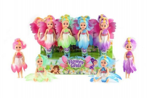 Panenka v květinové sukni 14cm plast asst 4 barvy v kornoutu 12ks v dbx