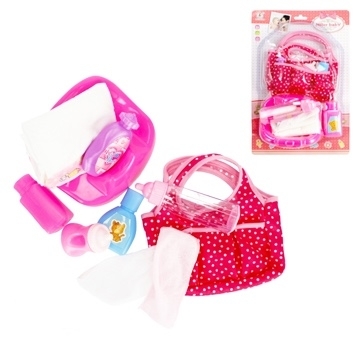 Díky této sadě se vaše dítě bude moci hrát na rodiče a starat se o svou oblíbenou hračku jako opravdové miminko. Obsah sady: taška na dětské výrobky, přebalovací pult, nočník, pampers, práškové balení, 3 láhve, olivový obal.