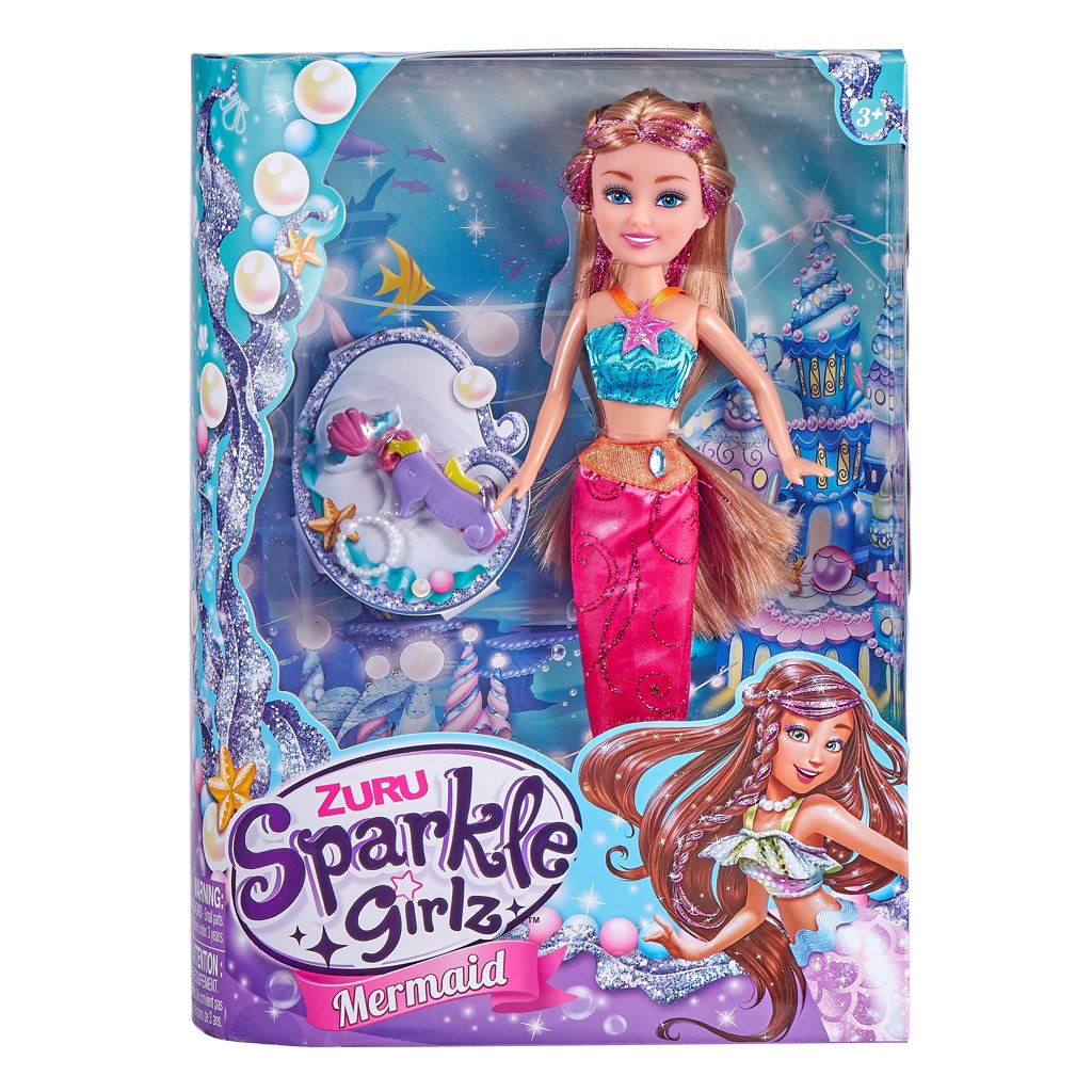 Mořská víla Sparkle Girlz, která má překrásně barevné šatičky. Je28 cm veliká. V sadě se nachází hřebínek a náramky.