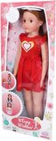 Panenka chodící 70cm zrzka v červených šatech v krabičce - skladem, lehce poškozený kus