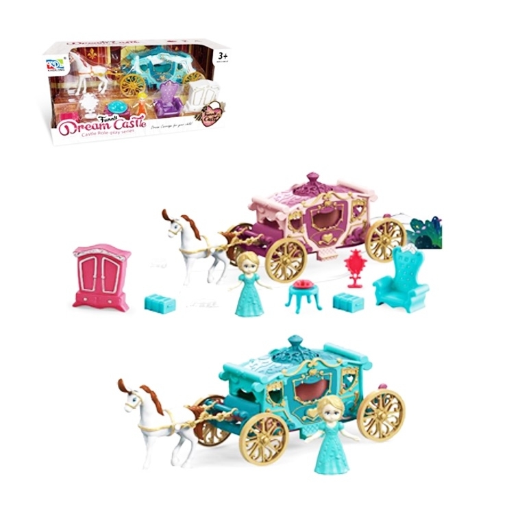 Pohádkový kočár s panenkou a doplňky. Pro každou malou slečnu, která má ráda princezny. Kočárek, kůň, panenka a jiné doplňky naleznete v této krásné sadě. Vhodné jako dárek. Ideální pro děti od 3 let.