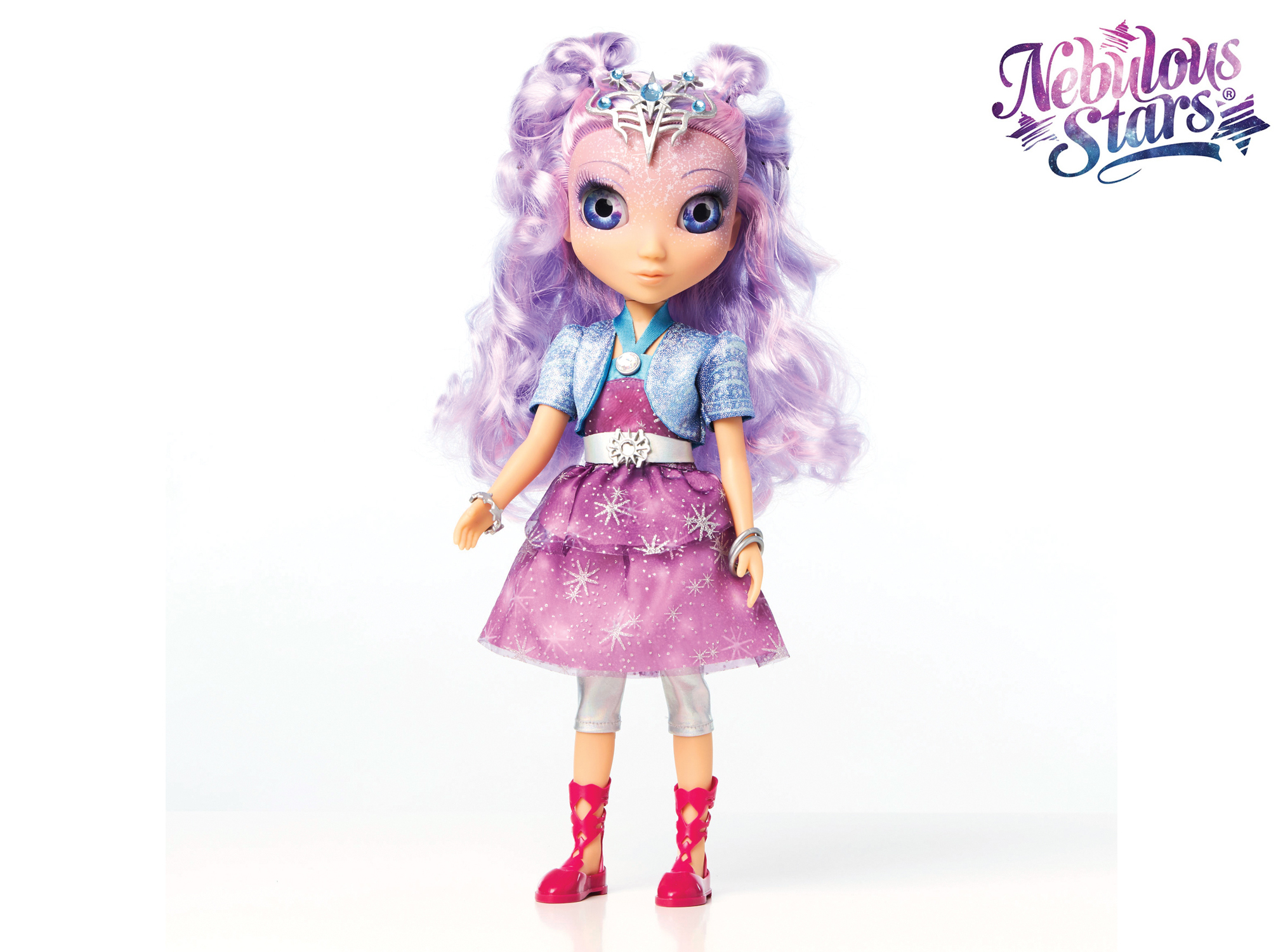 Představujeme velmi očekávanou panenku Nebulia! Má odnímatelné boty z PVC, čelenku a opasek. stříbrné třpytivé legíny, vlastní potištěný purpurový vrchní díl a sukni a tmavě modrou bolerkovou bundu. Velikost: 38cm. Doporučený věk: 3+