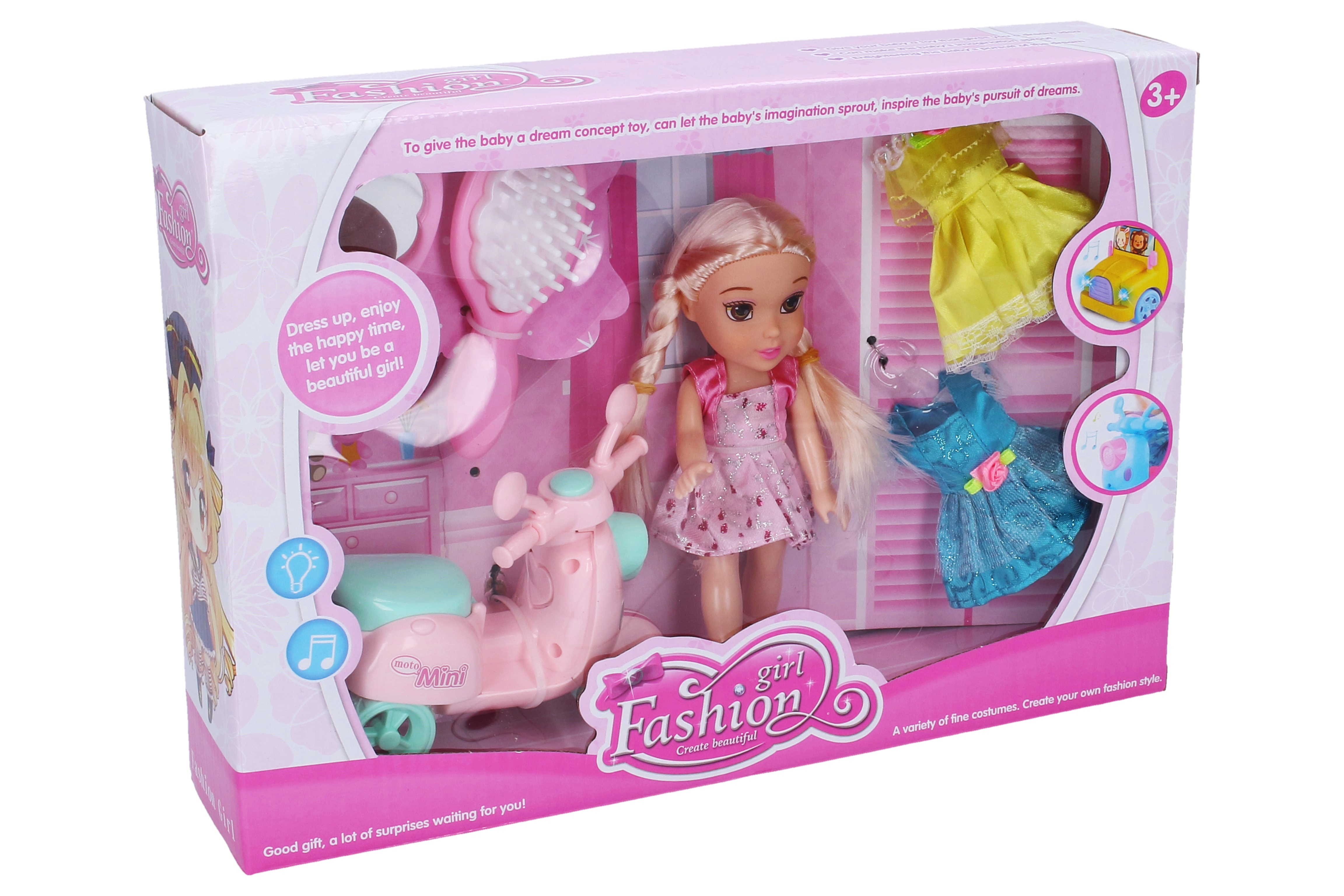 Učeš panence copánky, obleč ji do krásných šatů, nastartuj skútr a hurá na výlet! V balení najdeš náhradní šatičky, zrcadlo, hřebínek a skútr, který vydává zvukové efekty! No není to paráda?