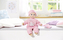 Baby Annabell Little Baby Fun je krásné miminko, které si moc rádo hraje. Když ji políbíš na čelo, oplatí ti to rozkošným zvukem polibku nebo zavolá svou maminku. Moc ráda se nechá lechtat na bříšku - směje se pak na celé kolo. Když je houpána dopředu a dozadu, tak zpívá. Po hraní je hladová a unavená: Baby Annabell pak hladově saje z její lahvičky. A jéje, vylila pár kapiček. Nevadí, stačí je utřít hadříkem. Po napití mlíčka z lahvičky si odříhne a zase je veselá a radostně brebentí, jakmile jí její malá maminka vymění plenku. Pak se schoulí a usne v růžovém pyžamku s růžičkami a potiskem ovečky. Když Baby Annabel Little Baby Fun něžně pohoupete, pomalu zavře očka, usne, a přitom si spokojeně chrupká. • Značková panenka Baby Annabell s životními funkcemi • Reaguje na doteky a pohyby • Baby Annabell umožňuje realistickou a nápaditou hru na maminku a podporuje rozvoj odpovědnosti a empatie. • Funguje na baterie Baby Annabell Little Baby Fun ve velikosti 36 cm v dupačkách a s čepičkou. Součástí je lahvička, plenka a hadřík.