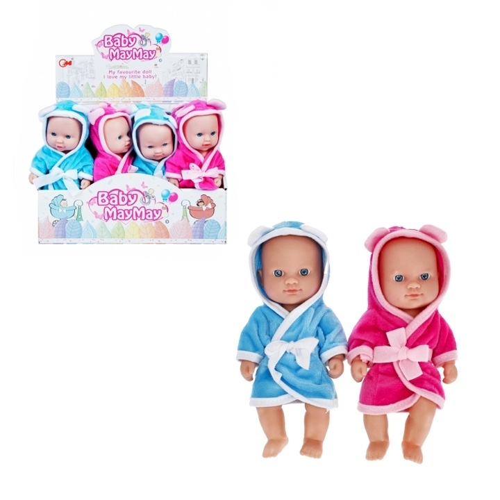 Panenka ve vyjímatelném županu, dostupná ve dvou barevných provedeních. Cena za 1 kus. Výrobek je vyroben z plastu a materiálu. Rozměry produktu [cm]: 10x23x5, DISPLAY rozměry balení [cm]: 30x20x20, nevyžaduje baterie. číst celé
