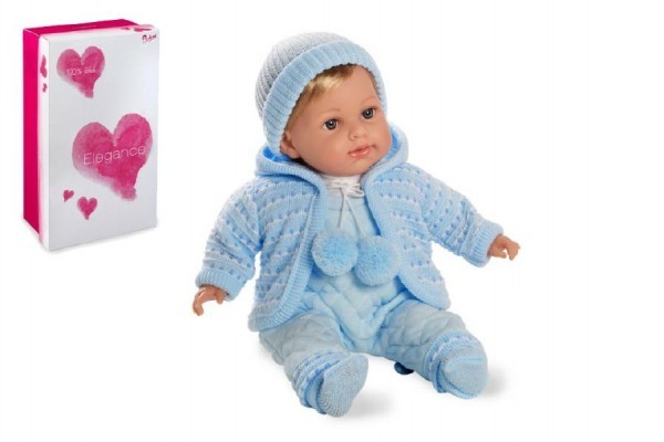 Panenka/miminko Elian 42cm modré měkké tělo se zvukem na baterie v krabici