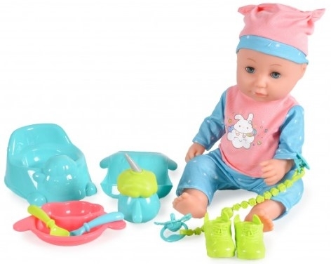 Panenka vydává zvuky, může pít vodu z lahvičky, která je součástí sady, a pak čůrat. Přiložená láhev je hračka a není vhodná pro kojence a děti.