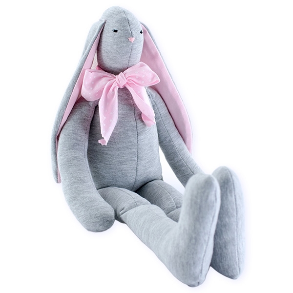 Králíček je z příjemného a měkkého materiálu s výraznou mašlí.